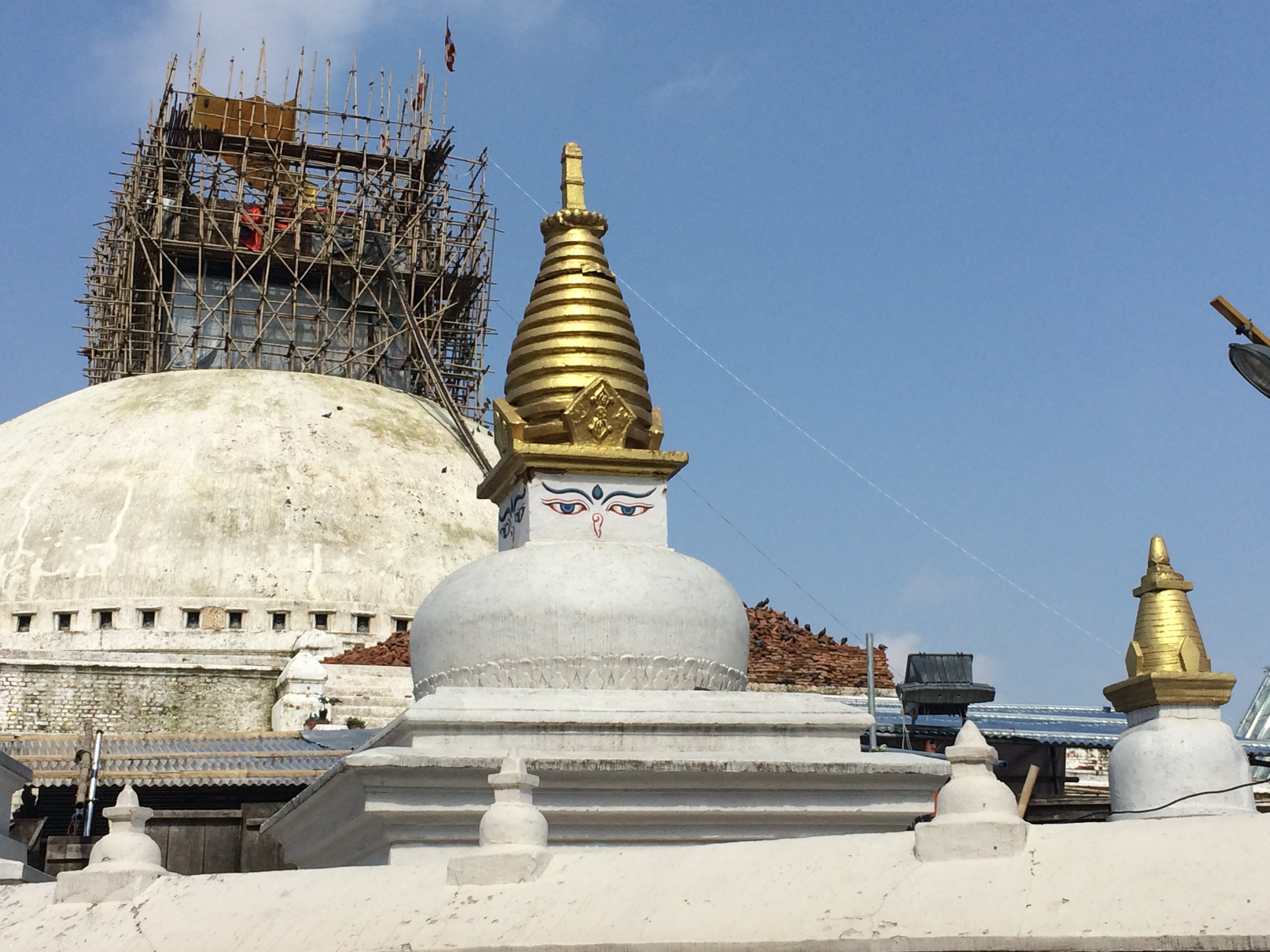 Today I toured around Thamel and neighboring Stupas with Ganga from WPC Nepal. Her ability to navigate the city paired with frequent stops for directions was impressive! My head was spinning leaving me directionless, so I was very thankful for my guide. We started with a bus ride to Shree Boudhanath, a temple for wish granting. Upon entry at most of the world heritage sites, foreigners typically have to pay a fee, somewhere around $15USD per site to enter, I presume will help fund post-earthquake construction.