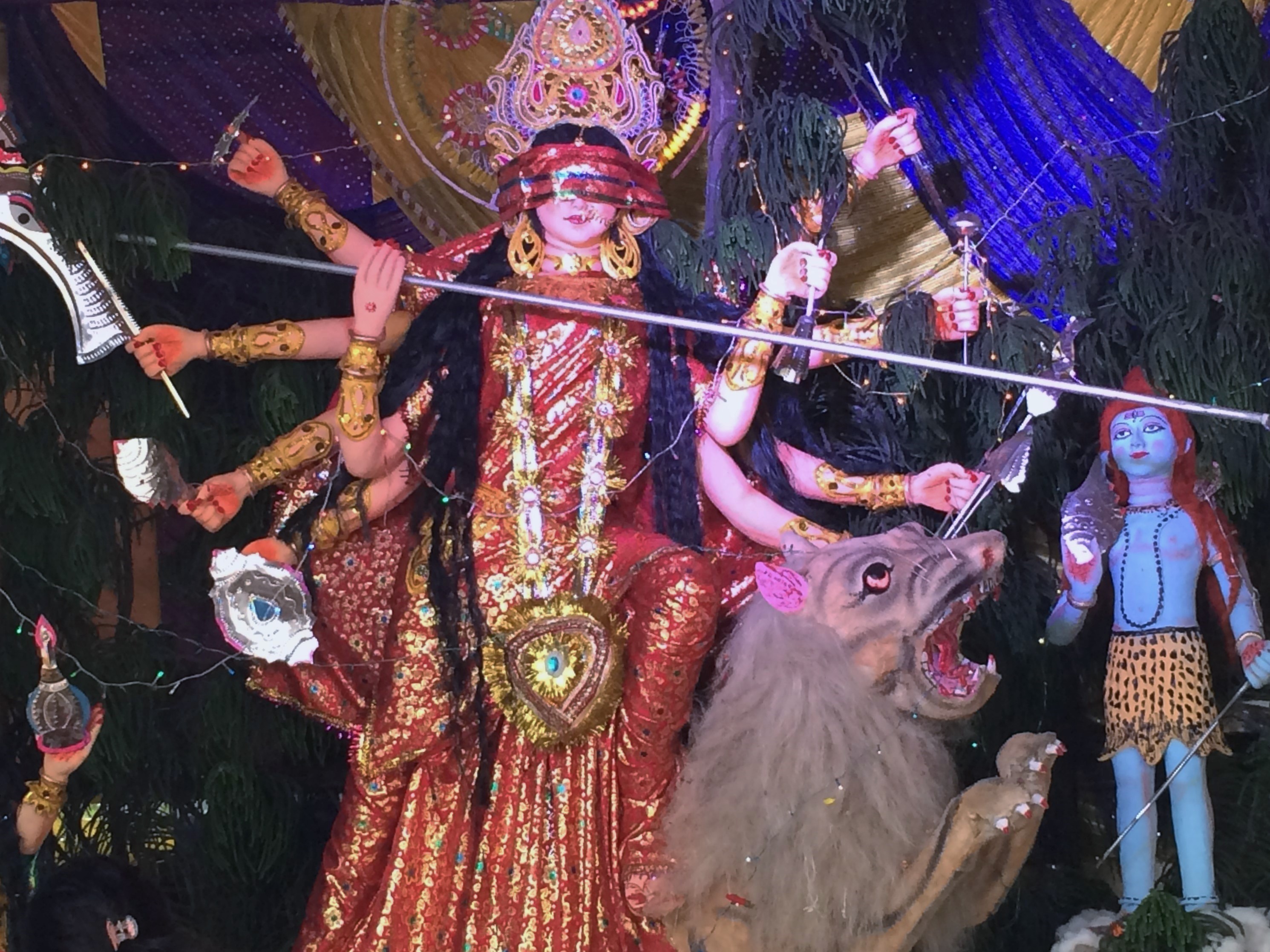This week started Nepal’s largest Hindu festival called Dashain.  Dashain is the celebration of a Hindu Goddess, Durga, and her victory over a treacherous demon who threatened to take over Devaloka, the home of the gods.  To celebrate, most temples in Hetauda are filled with special reenactments of the battle, adorned with gold and other ornaments.  During the 10 day celebration, Hindu’s and Christians alike use the time to visit with family and enjoy a break from school and work.  Sadly this year has led to mild